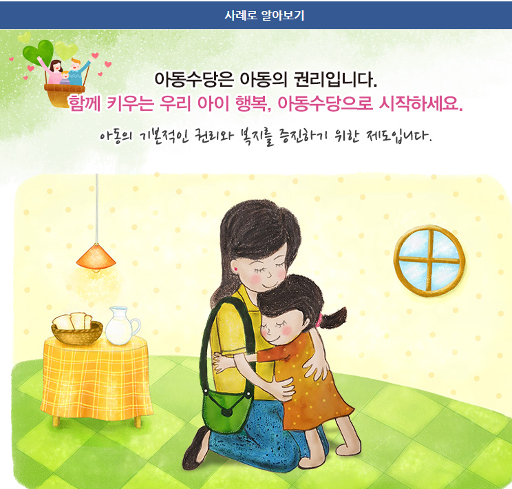 아래 사진은 사례로 알아보는 아동 수당 정보입니다.