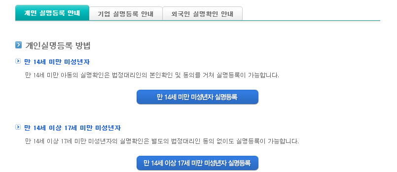 위에서 첫 화면 실명등록을 클릭해줍니다. 이 이후 만 17세 이상 성인임을 확인합니다.