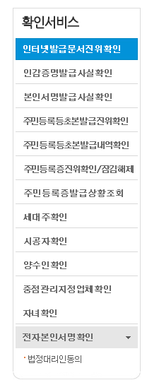 (전자본인서명확인서 : 사전에 민원인이 발급기관 직접 방문하여 발급시스템 이용승인 신청 - 이용승인 - 민원24시 접속 - 공인인증서로 전자본인서명확인서 작성
