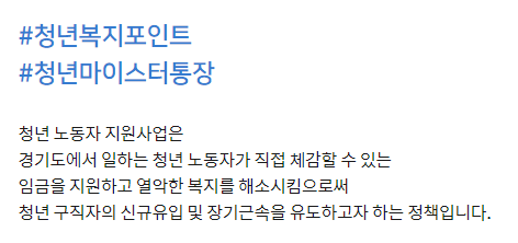 이 외에도 경기도 일하는 청년통장, 희망두배 청년통장, 잡아바 사이트에서 이용가능한 청년 복지포인트 등 다양한 혜택이 있으니 지금 바로 알아보시기 바랍니다. (맨 아래 포스팅에 추가로 정리함)