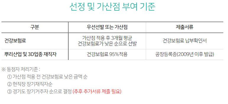 경기도 청년 마이스터통장 선발기준은 참여조건 충족한 신청자를 종합평가 후 선발 후, 3개월 평균 건보료가 낮은 순으로 선발합니다.