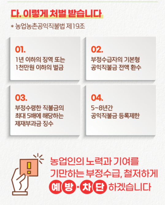 그리고 최근 공익직불금 문제가 많았기에 부정수급 방지도 잘 봐주셔야 합니다.
