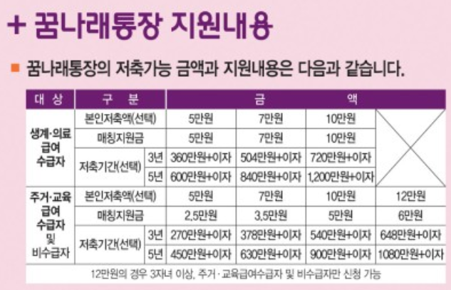 꿈나래 통장이란 지난 2009년부터 시행된 통장입니다. 참가자가 매년 3년이나 5년간 매월 저축하는 금액을, 소득 수준별로 서울시 예산금으로 함께 적립해주는 것입니다.