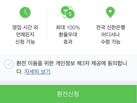 2. 환율 우대 최대 90% (신한은행 최대 90% 우대, 기타 은행 최대 70% 우대)