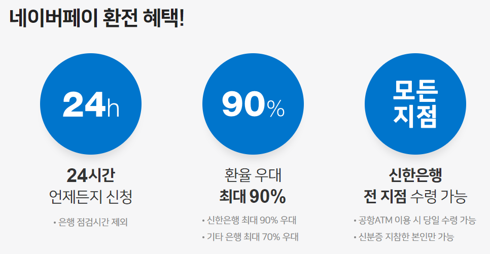 네이버 페이 환전 혜택은 다음 세 가지가 있습니다.