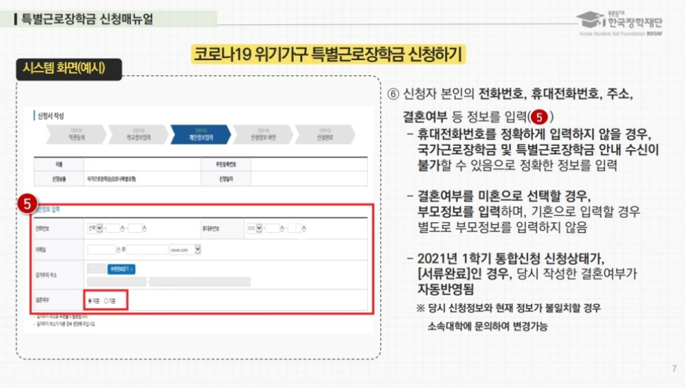 또한 예외 조건이 있는데, 특별근로장학금 운영대학 재학생(학부)만 신청이 가능하고, 2021학년도 1학기 1차, 2차 통합신청기간에 국가근로장학금 신청이력이 존재하는 학생은 신청대상이 아닙니다. 본인이 모르고 신청했더라도 자동연계가 됩니다.