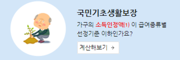 복지로에 접속> 복지서비스 텝> 복지서비스 모의계산 클릭 >국민기초생활보장
