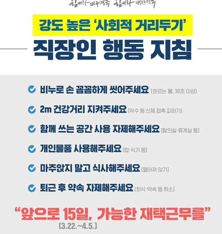 사회적 거리두기 직장인 행동지침