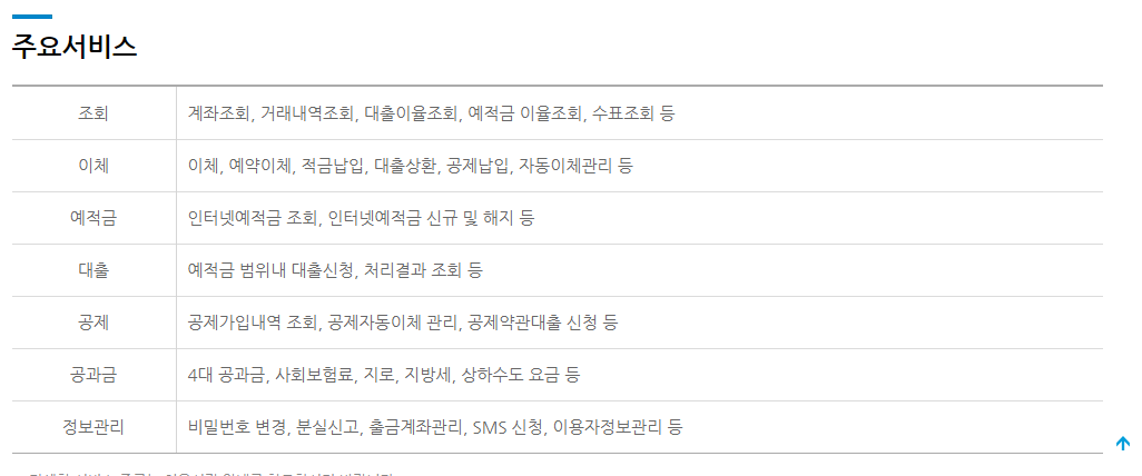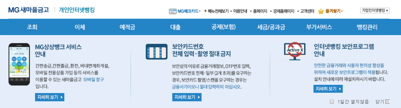 새마을금고 개인인터넷뱅킹 주요 서비스