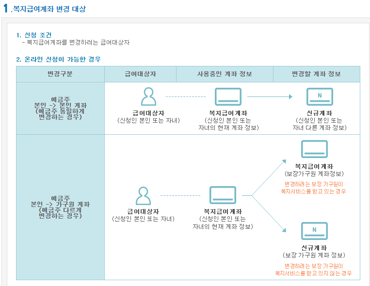 추가적으로 등록주소지가 다른 가족구성원의 복지급여계좌변경동의는 해당 가구원의 공인인증서로만 가능합니다.
