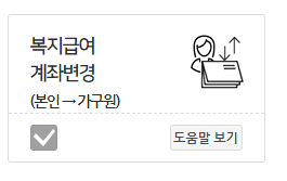 추가적으로 등록주소지가 다른 가족구성원의 복지급여계좌변경동의는 해당 가구원의 공인인증서로만 가능합니다.