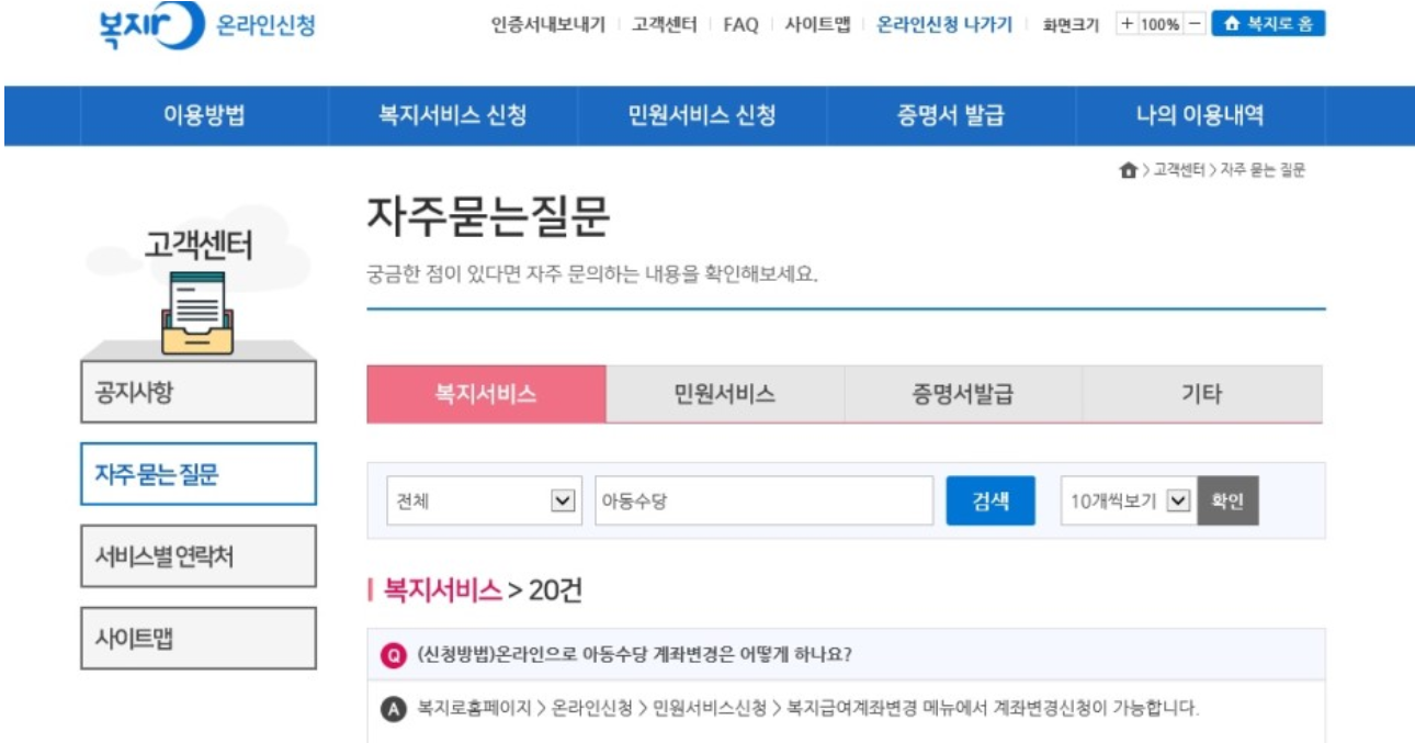 또 아동수당 복지급여계좌 변경신청의 경우, 다자녀 2인 이상 계좌로 변경하려면 관할 주민센터를 방문해서 신청해야 하며 온라인으로는 신청 불가능합니다.