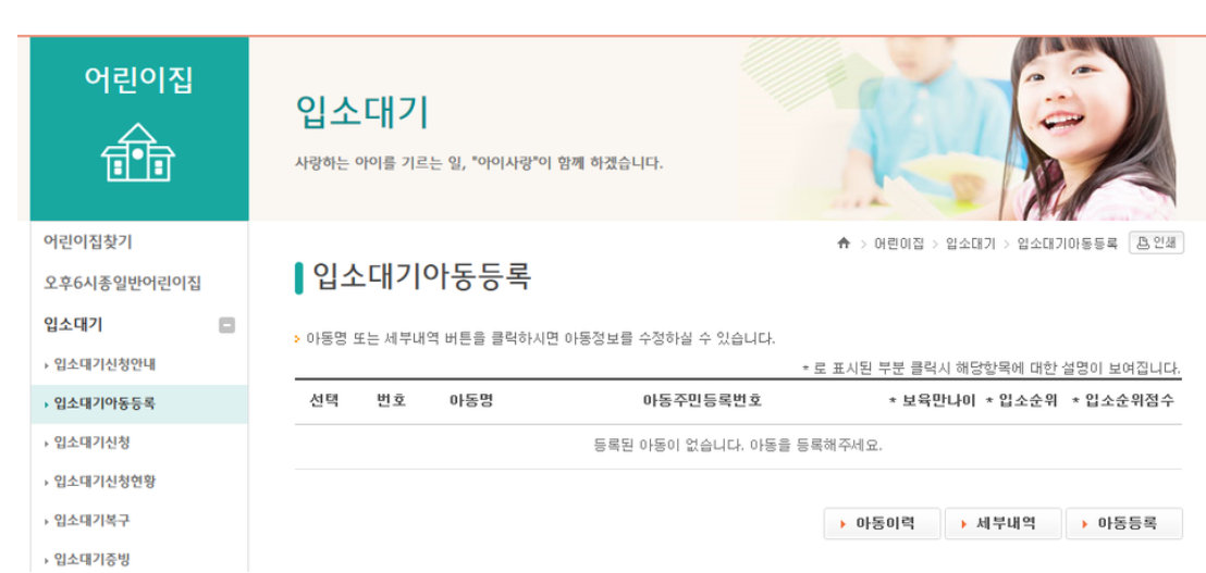 어린이집 입소대기신청 순서는 입소를 대기한 후 순번이 오면 전화가 오는데, 상담 후에 입소를 결정합니다. 주민등록번호가 있어야 신청이 가능합니다.