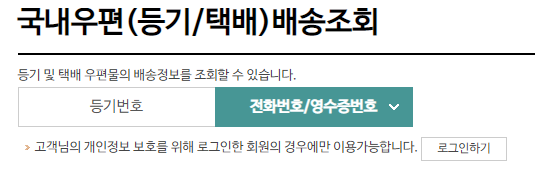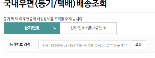 위 사이트에 접속한 후에 국내우편 (등기/택배) 배송조회를 누르면 됩니다.