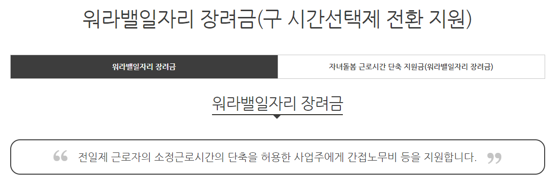 그래서 고용부에서는 근로자 개개인에 대해서도 근로시간 단축을 활용하도록 지원을 해주기로 했습니다.