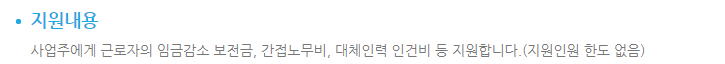 지원내용 관련해서는 아래처럼 자세히 설명드리겠습니다. 먼저 7일 일주일 동안 근무시간을 15시간에서 35시간까지 줄인다면, 정부에서 최대 12개월 (대체인력의 경우에는 14개월) 다음을 서포트해줍니다.