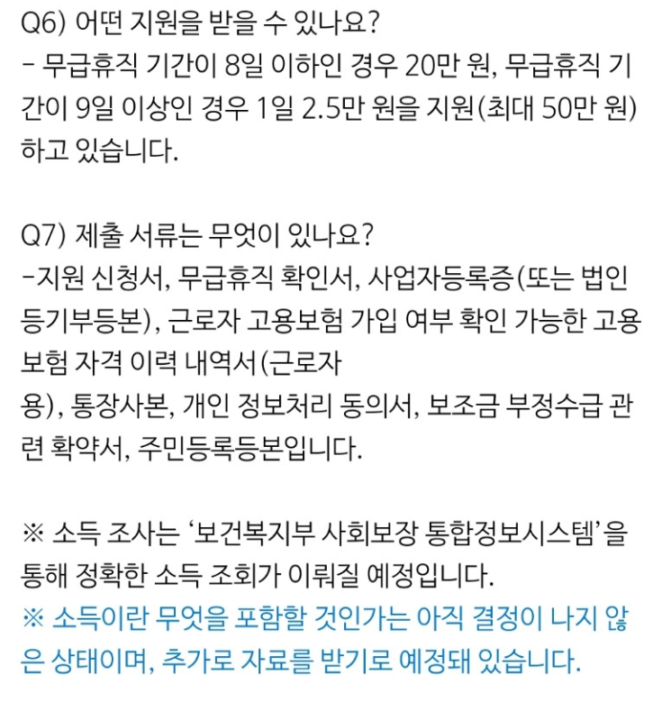 3. 중위소득 100% 이하 무급휴직자 생계비