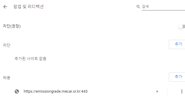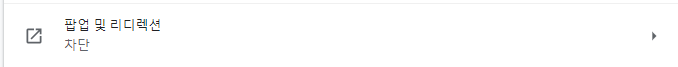 그리고 팝업 및 레디렉션 항목에도 마찬가지로 회색으로 되어 있는데, 이걸 활성화해서 파란 색으로 바꿔주면 차단이 됩니다. 혹시 여기 이상한 사이트는 없나 한 번 더 확인해주시면 되겠습니다.