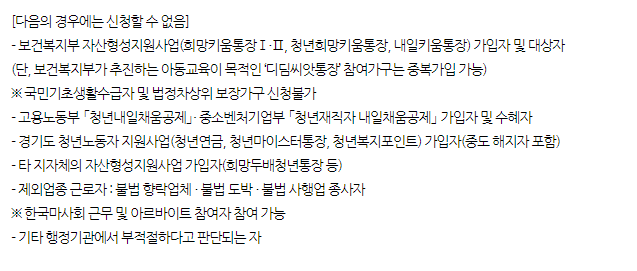 희망두배 청년통장 신청자격 외