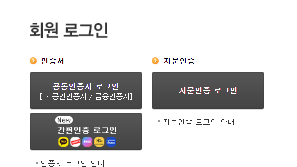 여러 종류가 있는데 공인인증서 로그인으로 해도 됩니다.