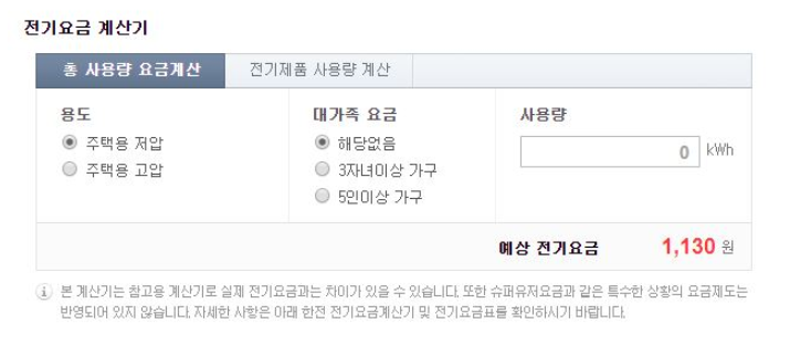 계약 종별에 따른 조건을 선택하신 후 요금계산 버튼을 누르시면 상세계산내역을 보실 수 있습니다.