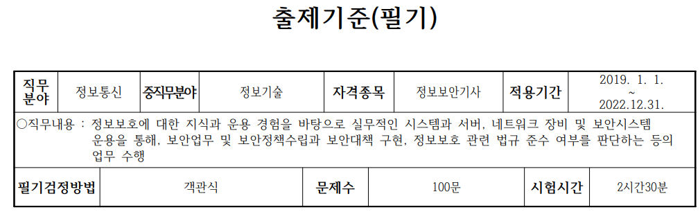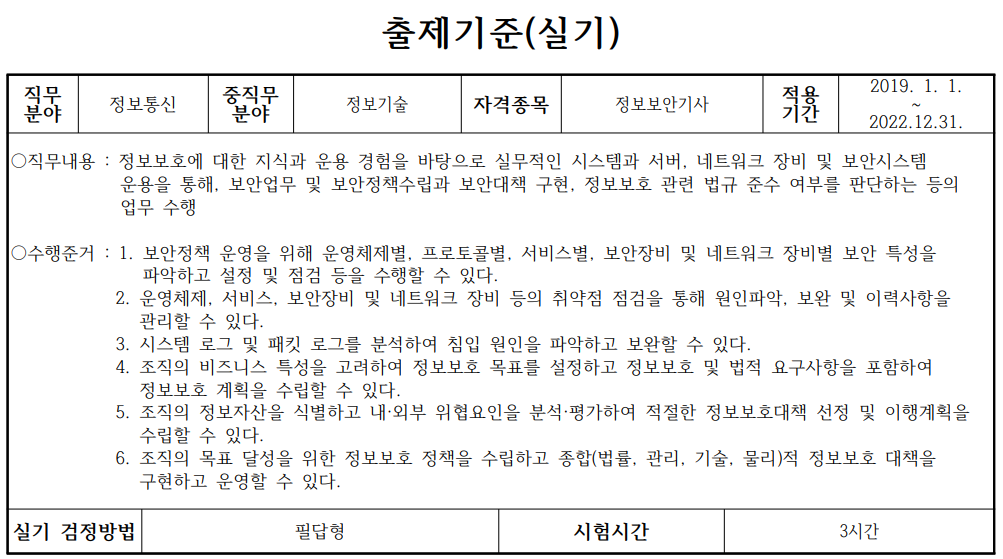 정보보안기사 출제기준 필기는 다음과 같습니다.