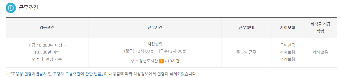 근무조건과 급여는 나와있지 않지만 아무래도 정부가 제공하는 것이니 최저임금은 맞춰서 줄 거라는 판단이 서네요.