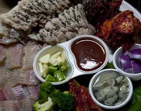 음식을 모두 나누어 먹습니다.