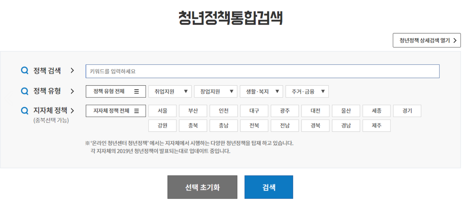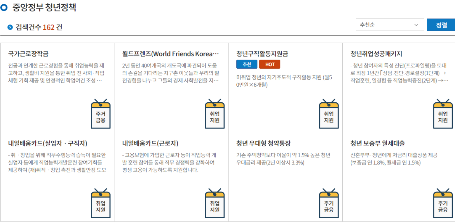 중앙정부 지자체 청년정책 검색도 가능합니다.
