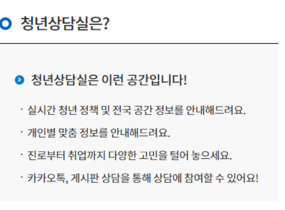 그리고 청년상담실도 제공을 해줍니다.