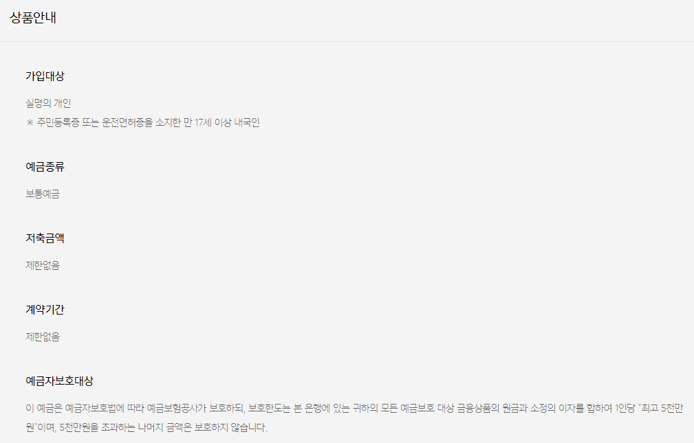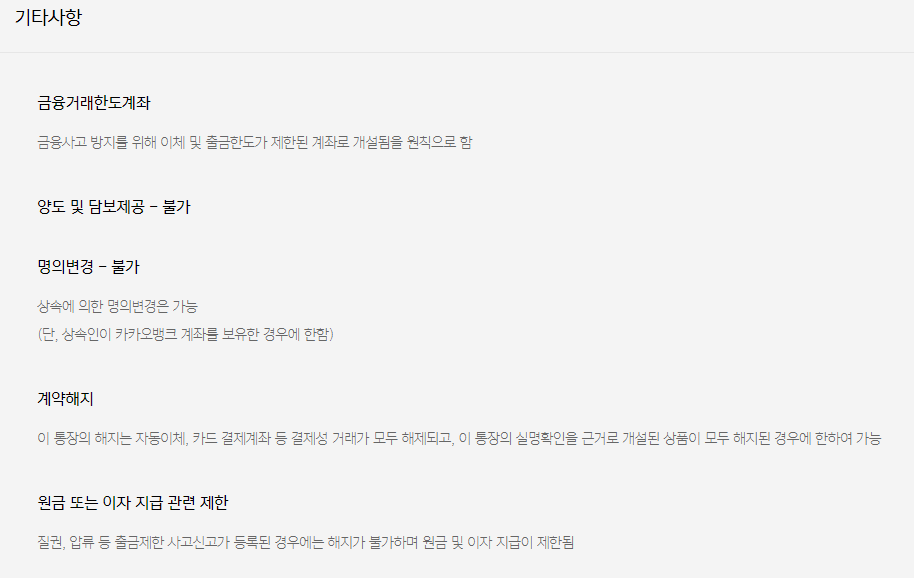 다음으로는 카카오뱅크 입출금 통장의 설명에 대한 그림입니다.