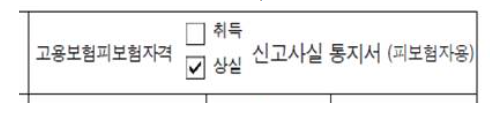 만일 완벽히 처리가 되었다면 상실 란에 체크가 되어 있을 것이고, 취득이라고 되어 있다면 아직 퇴사처리가 안 된 것입니다.