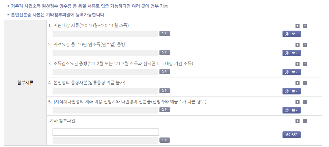 특고 프리랜서 4차 재난지원금 신청 서류는 다음과 같습니다.