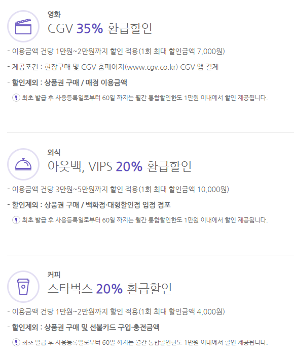 더 자세하게 보면은 아래와 같이 추가적인 헤택이 있습니다. 상세혜택도 꼭 챙겨주시기 바랍니다.