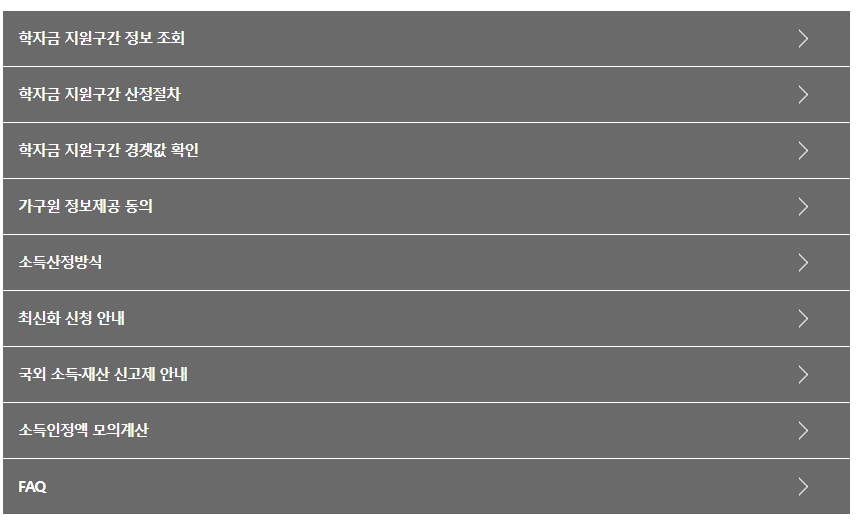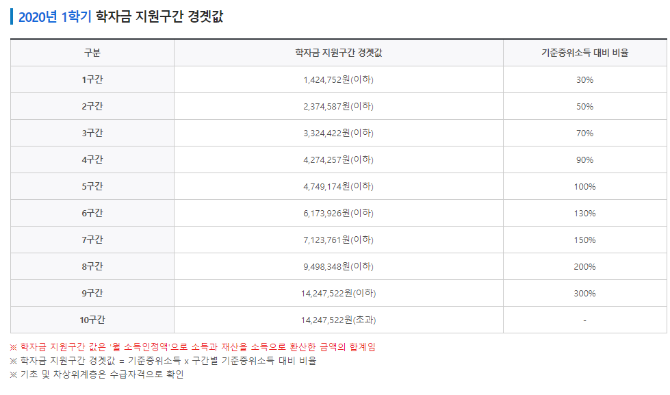 ※ 학자금 지원구간 값은 '월 소득인정액'으로 소득과 재산을 소득으로 환산한 금액의 합계입니다.