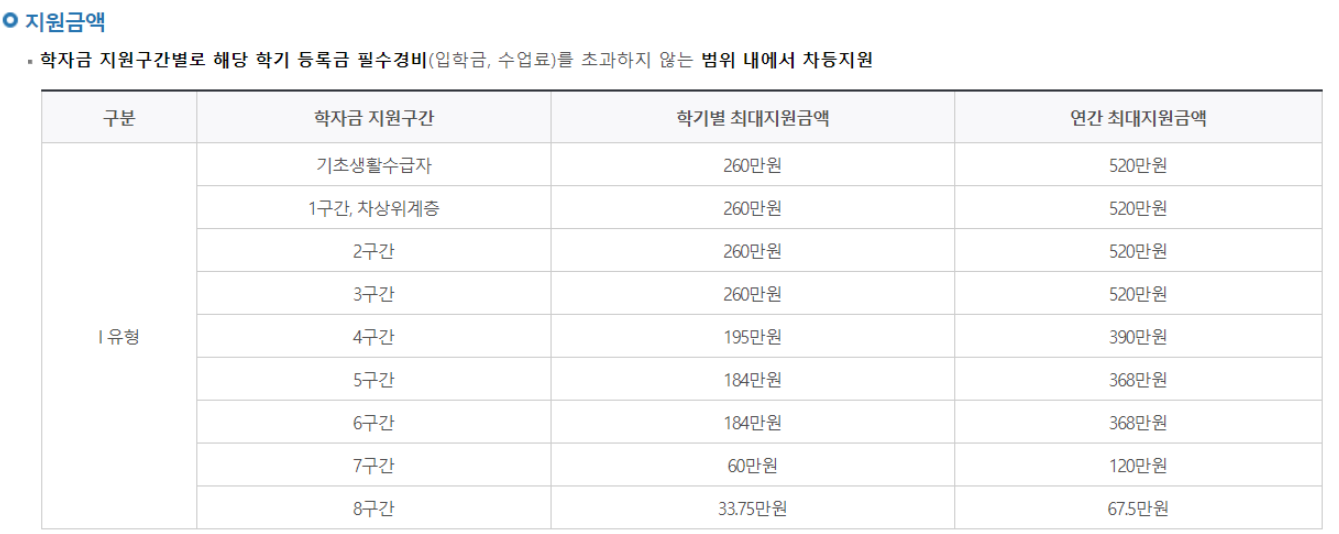 -I유형: 국내 대학에 재학 중인 소득 8분위(구간) 이하 대학생 중 성적기준 충족자