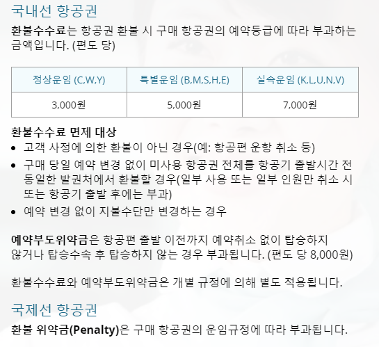 대한항공 항공권 취소 수수료
