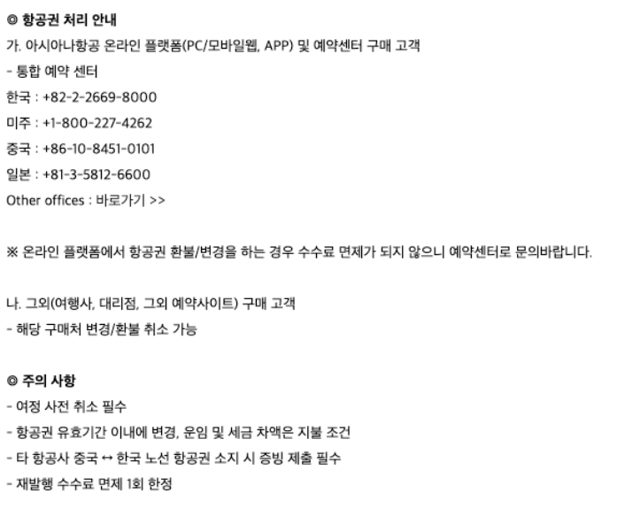 아시아나 항공권 취소 수수료