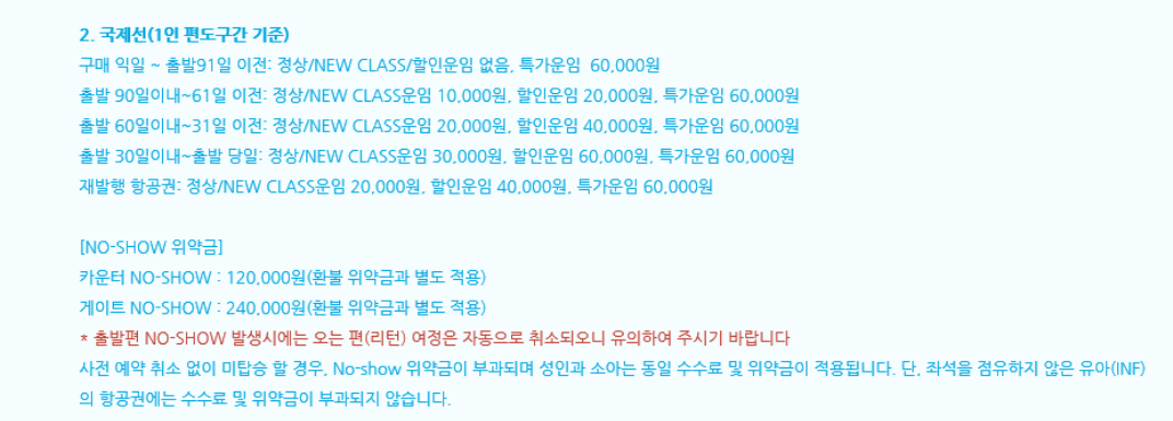 아래는 국제선 항공권 취소 수수료입니다.