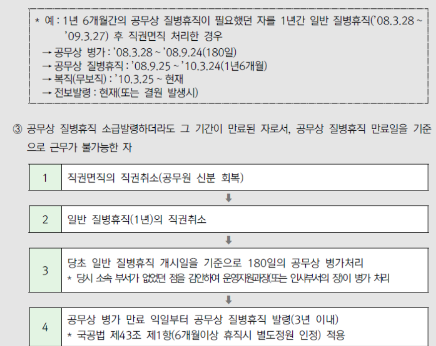 참고로 휴직 중 공무상 요양승인이 결정된 자에 대한 인사처리를 살펴보면, 다음 사례가 있으니 확인해보시기 바랍니다.