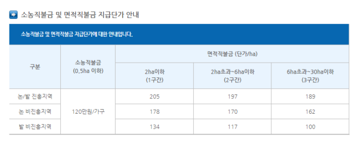 그 이상 농지에 대해서는 면적 기준에 따라 금액이 다른 면적직불금이 지급이 됩니다.