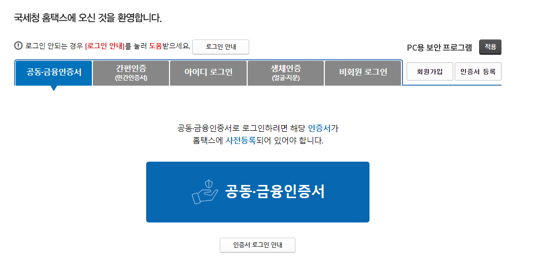 그럼 이제 근로장려금 신청 방법을 알려드리겠습니다. 먼저 포털사이트에서 홈택스를 검색한 뒤에, 로그인을 합니다.
