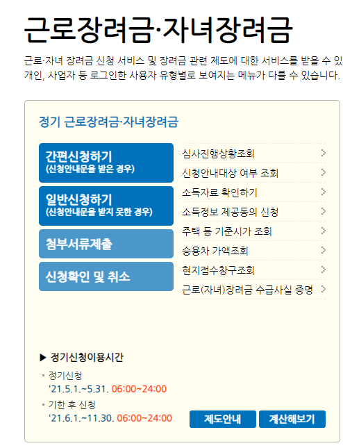 그리고 근로장려금 반기신청자는 5월 정기신청 대상이 아닙니다.