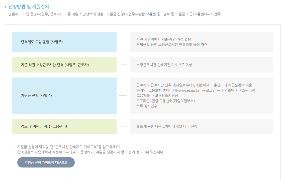 그래서 고용부에서는 근로자 개개인에 대해서도 근로시간 단축을 활용하도록 지원을 해주기로 했습니다.