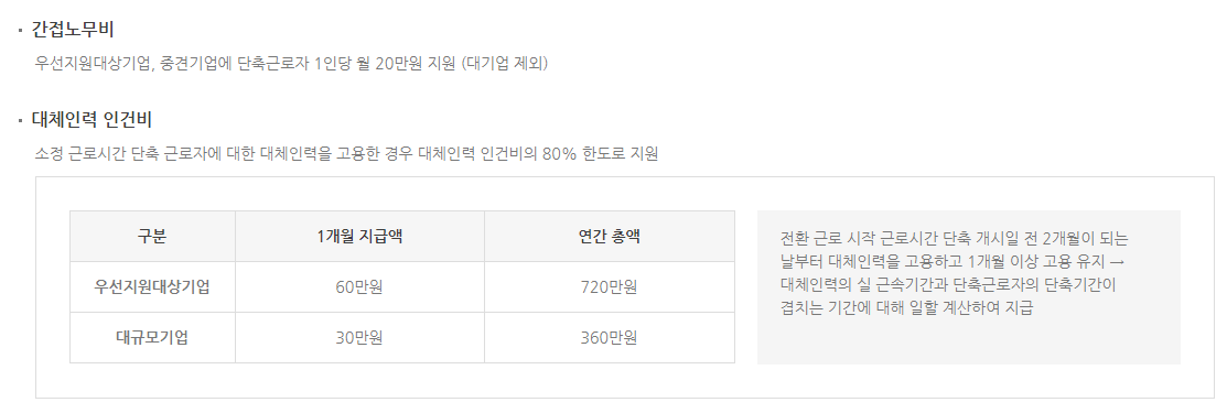 2) 기존 주 25~35시간 이하 단축시 240,000원에서 400,000원으로 확대