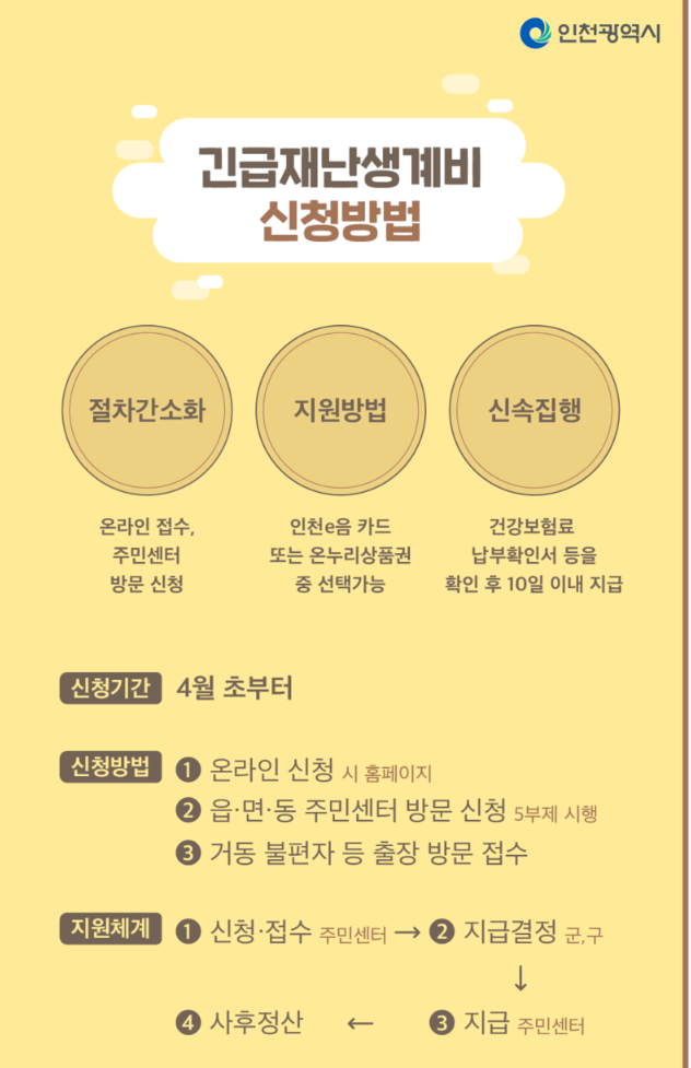 인천 긴급재난 생계비 신청 기간 및 지원 방법