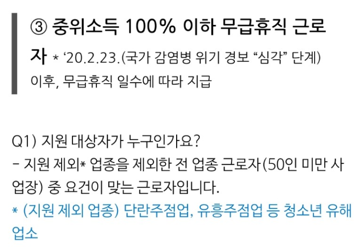 3. 중위소득 100% 이하 무급휴직자 생계비