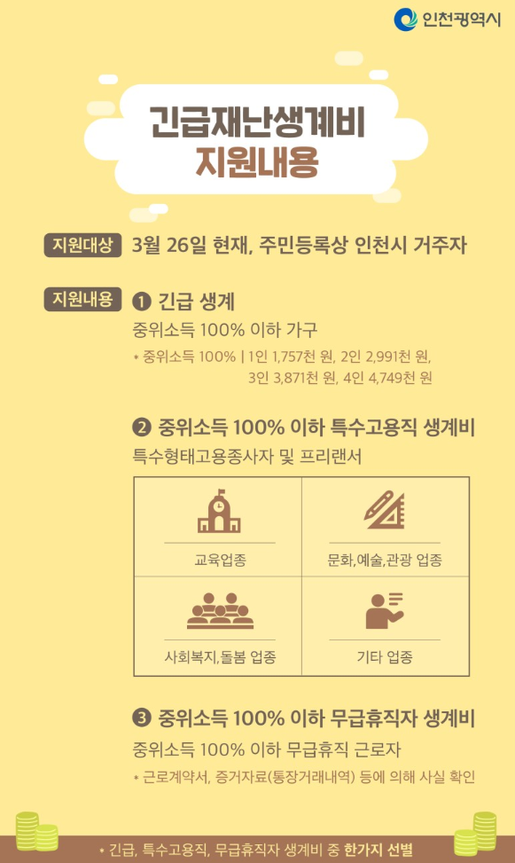 인천 긴급재난 생활비 지원대상