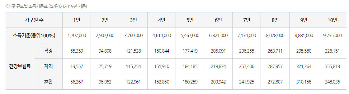 이 때 여기에서 기준중위소득이 존재하는데, 기준중위소득은 4인 가구 기준 4,749,174원입니다. 가구수마다 다르니 다시 계산해보시기 바랍니다. 아래 표를 봐주시기 바랍니다.